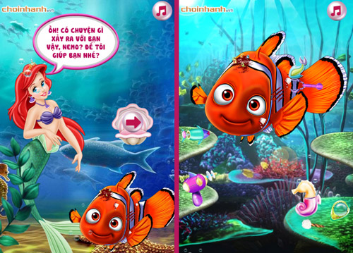Ariel chăm sóc Nemo – Ariel save Nemo là một trong những tựa game bạn gái được người chơi trên toàn thế giới vô cùng yêu thích. Nội dung game mini Ariel chăm sóc Nemo là câu chuyện xoay quanh tình bạn của chú cá tinh nghịch cùng cô công chúa Ariel xinh đẹp.