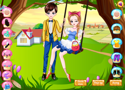 Dùng chuột click vào các món đồ bạn ưng để trang bị cho cặp đôi: makeup, quần áo, phụ kiện, giày dép…