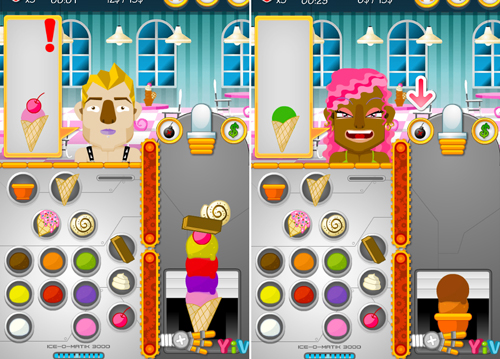 Sử dụng chuột click vào các nguyên liệu để cho ra món kem giống với order của khách hàng. Hoàn thành thật nhanh chóng để phục vụ được thật nhiều khách nhé.