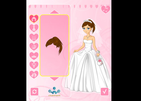 Để hoàn thành nhiệm vụ trong trò chơi này, bạn hãy sử dụng chuột để lựa chọn các mẫu váy ưng ý, đừng quên phụ kiện đi kèm và hoa cưới nhé.