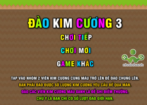 Nhiệm vụ của bạn là đào số kim cương bằng cách click chuột hoặc tap vào nhóm từ 2 viên kim cương cùng màu trở lên để đào chúng. Nên click vào các viên kim cương có màu xanh lá để ghi được điểm thưởng lớn trong game nhé.