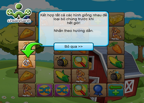 Hướng dẫn chơi game: Dùng chuột click vào những con vật và dụng cụ giống nhau